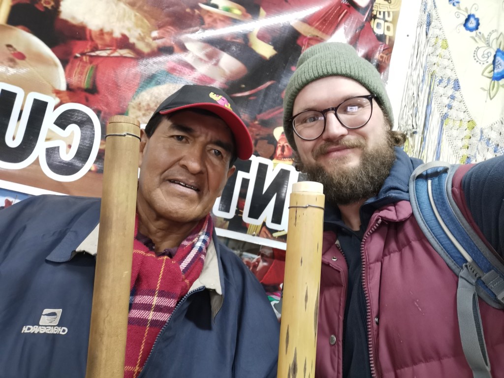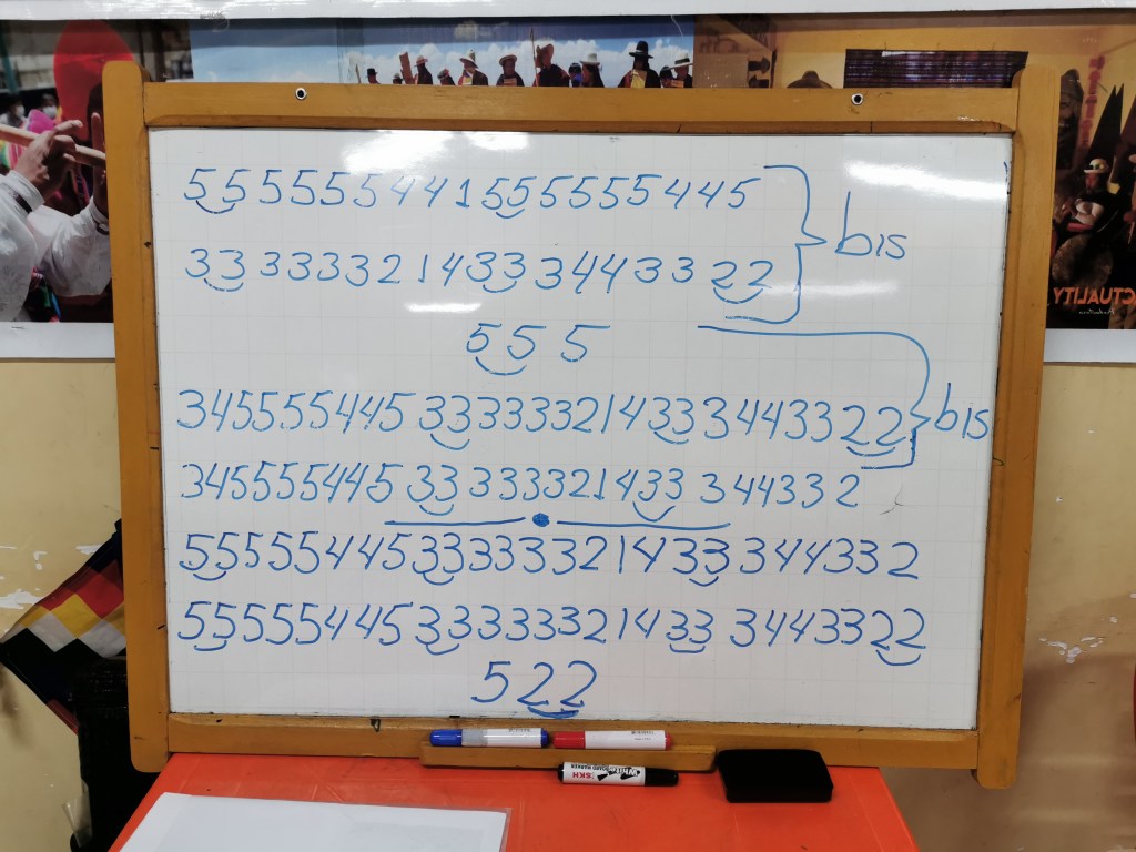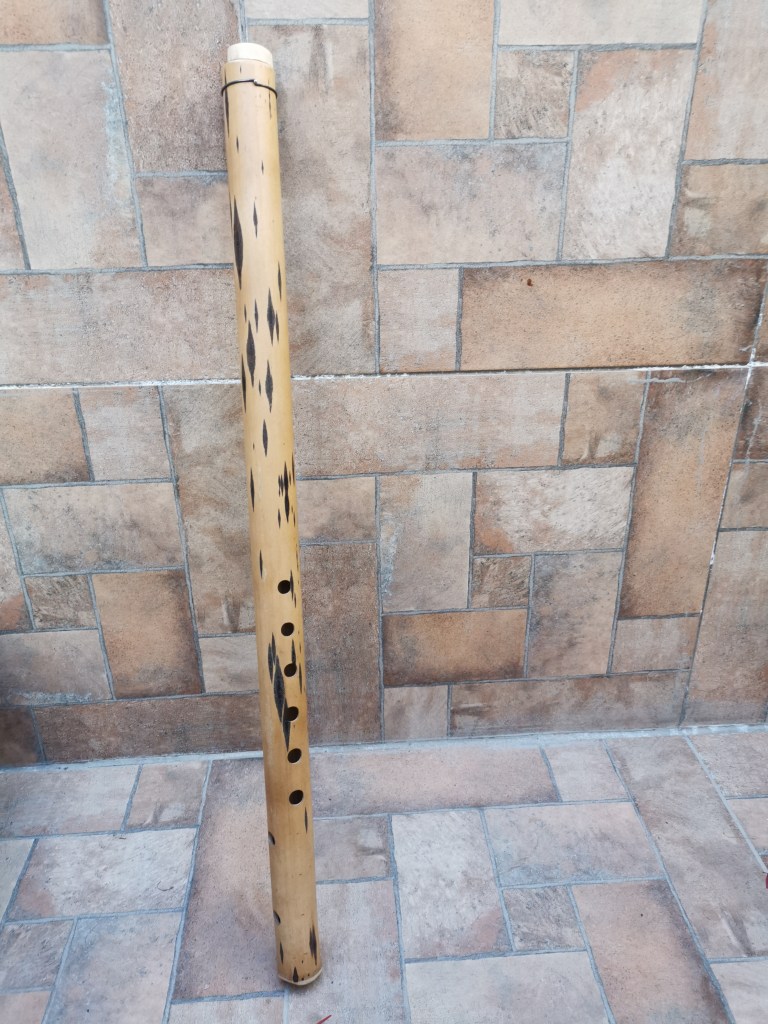 ENG: Last week I participated at Ignacio Quispe’s 5-day intensive musiñu workshop at the Centro Cultural Jach’a Tunupa in El Alto. I know musiñu specialist Ignacio for almost ten years now, and I always get enthusiastic every time I hear him speaking about the history of musiñu, his personal musical life stories, the musical bamboos used in musiñu making, and how musiñu music evolves under his leadership, guidance, and visions. He is a very inspiring person, and I am honored to continue collaborating with him on his projects in the future, for example our collaborative book project Crónicas del Musiñu, or the short documentary film about ecological and environmental knowledge and musical bamboo gathering, which we will make with the help and technical support of Richard Mújica of the National Museum of Folklore (MUSEF) in La Paz. These outputs will be very valuable pedagogic sources for the intergenerational transmission of interdisciplinary knowledge related to making and playing Andean flutes, and musical bamboo gathering and sourcing. Ignacio often told me that he is very concerned about the future of his Aymara wind music and flute-making culture, and that he is happy to be able to organize musical workshops such as the one he gave over the last week, so that the younger generations learn from him what he has learnt from his ancestors (look here). Ignacio also made the musiñu duct flutes for the workshop participants, and he made a very special requinto for me (medium size register). It is made from a robust and mature tuquru bamboo (Aulonemia herzogiana) from Choquetanga area in the Southern La Paz Yungas of Inquisivi province. It is a professional tuquru bamboo that Ignacio and other specialist musiñu musicians much value due to its heavier weight and acoustic properties (more details here). Instead of using mahogany wood (Swietenia macrophylla) for the block, he employed the hard trumpetbush wood (Tecoma stans), which combines very well with the so-called “moles” (sp. lunares) on the outer surface of the bamboo (tuquru lunajero). These moles culturally indicate a specific Andean perspective to bamboo and flute aesthetics, and ecologically signal that the plant, from which the tuquru tube was once collected, was about to decay and die after a ten-year vegetative growth period.