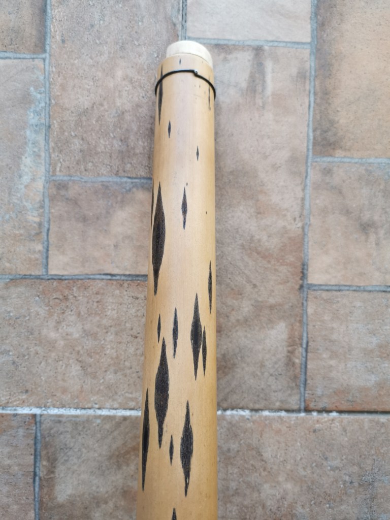ESP: La semana pasada tuve el honor de participar en el taller intensivo de musiñu de 5 días a cargo del maestro Ignacio Quispe. El taller tuvo lugar en el centro cultural Jach’a Tunupa en El Alto. Conozco al maestro Ignacio, especialista en musiñu, desde hace casi diez años, y estoy entusiasmado cada vez que le escucho hablar sobre la historia del musiñu, sus historias personales de su vida musical, los bambúes musicales utilizados en la fabricación de los musiñus, y cómo la música de musiñu avanza bajo su liderazgo, guía y visión. Es una persona muy inspiradora, y me siento honrado de seguir colaborandole en sus proyectos en el futuro, por ejemplo, nuestro proyecto colaborativo de libro Crónicas del Musiñu, o el cortometraje documental sobre el conocimiento ecológico y medioambiental y la recolección de bambúes musicales, que realizaremos con la ayuda y el apoyo técnico de Richard Mújica, del Museo Nacional del Folklore (MUSEF) de La Paz. Estas producciones serán fuentes pedagógicas muy valiosas para la transmisión intergeneracional de conocimientos interdisciplinarios relacionados a la fabricación y la ejecución de flautas autóctonas, y a la recolección y el aprovisionamiento de bambúes musicales. Ignacio me decía a menudo que le preocupa mucho el futuro de su cultura musical aerófona aymara y de la construcción de flautas andinas, y que le apasiona y alegra poder organizar talleres musicales como el que dio la semana pasada, para que los jóvenes aprendan de él lo que el aprendió de sus antepasados (veáse aqui). Ignacio también hizo los musiñus para los participantes del taller, y construyó un requinto muy especial para mí. Está hecho de un tuquru (Aulonemia herzogiana) robusto y maduro de la zona de Choquetanga en los Yungas del Sur del departamento de La Paz, de la provincia de Inquisivi. Es un tuquru profesional, que Ignacio y otros músicos especialistas en musiñu valoran mucho por su mayor peso y sus propiedades acústicas (más detalles aqui). En lugar de utilizar la madera mara (Swietenia macrophylla) para la tapa, empleó la madera dura sau sau (Tecoma stans), la cual combina muy bien con los “lunares” de la superficie exterior (tuquru lunarejo). Estos lunares indican culturalmente una perspectiva andina específica sobre la estética del bambú y la flauta, y señalan ecológicamente que la planta, de la cual en su día se recogió el tubo de tuquru, estaba a punto de caerse y morir tras un periodo de crecimiento vegetativo de diez años.