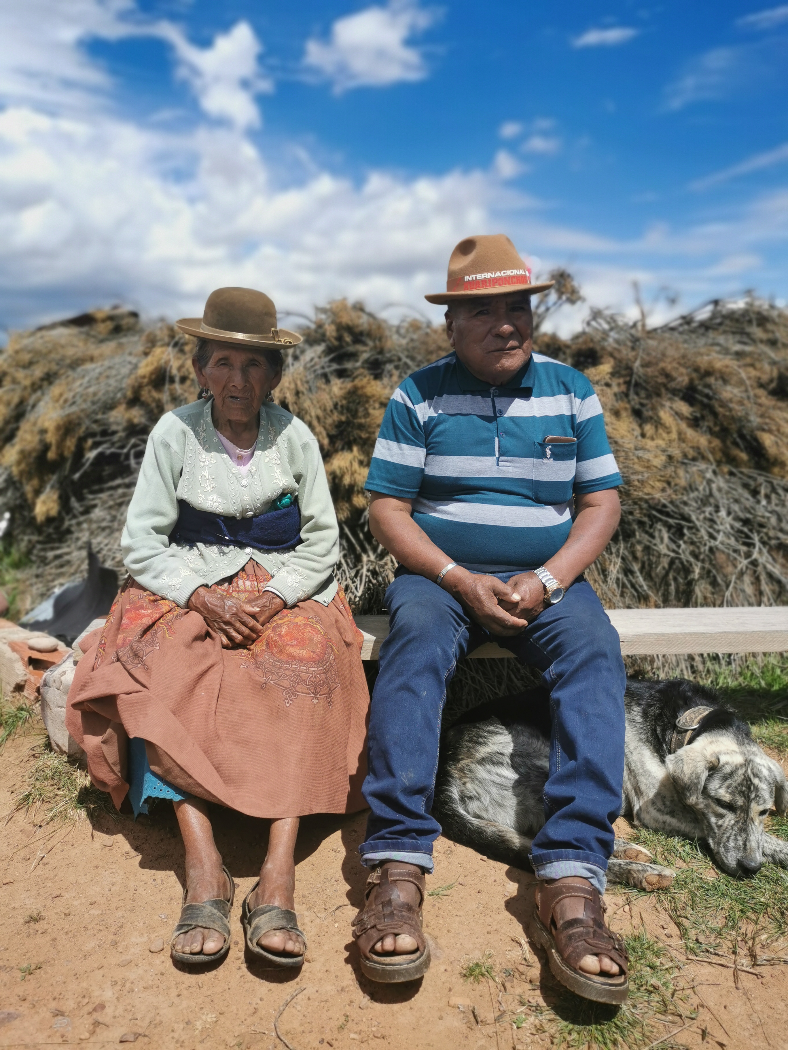 ESP: Jesika y yo tuvimos el honor de acompañar al músico y luriri especialista en musiñu Ignacio Quispe en su viaje a la comunidad de Kolluhuma-Belén en la provincia de Aroma, donde se reencontró después de once años con su buen amigo y músico de musiñu Vicente Ojeda. Don Ignacio nos invitó a documentar su entrevista con Don Vicente, uno de los iniciadores del famoso grupo de Moseñada llamado Huari Ponchos. Los Huari Ponchos se fundaron en los años 50 y fueron el primer grupo de Moseñada de la región. También fueron el primer grupo que grabó vinilos y casetes en los años sesenta con el sello discográfico comunitario local llamado Fonolandia. Para su libro Crónicas del Musiñu el hermano Ignacio quiere incluir un capítulo sobre la antología del musiñu, en el cual quiere documentar con grabaciones seleccionadas los cambios y transformaciones de la música de musiñu desde su cuna hasta la actualidad. Para este capítulo antológico, las grabaciones de Huari Poncho de los años sesenta son una fuente valiosa y temprana de la Moseñada en el altiplano aymara de las provincias de Aroma y Loayza, donde se originó la Moseñada. Muchas gracias a Don Vicente y su esposa por recibirnos en su casa en Kolluhuma-Belén y por compartir con nosotros comida, coca e historias. Fue increíble ver a dos protagonistas clave de la música de musiñu y gran maestros intercambiando experiencias e historias de vida sobre la Moseñada en el Altiplano boliviano. El libro de Ignacio será una fuente extraordinaria para que las nuevas generaciones de músicos de musiñu puedan explorar con más detalle los orígenes y el desarrollo de la Moseñada en el Altiplano aymara.