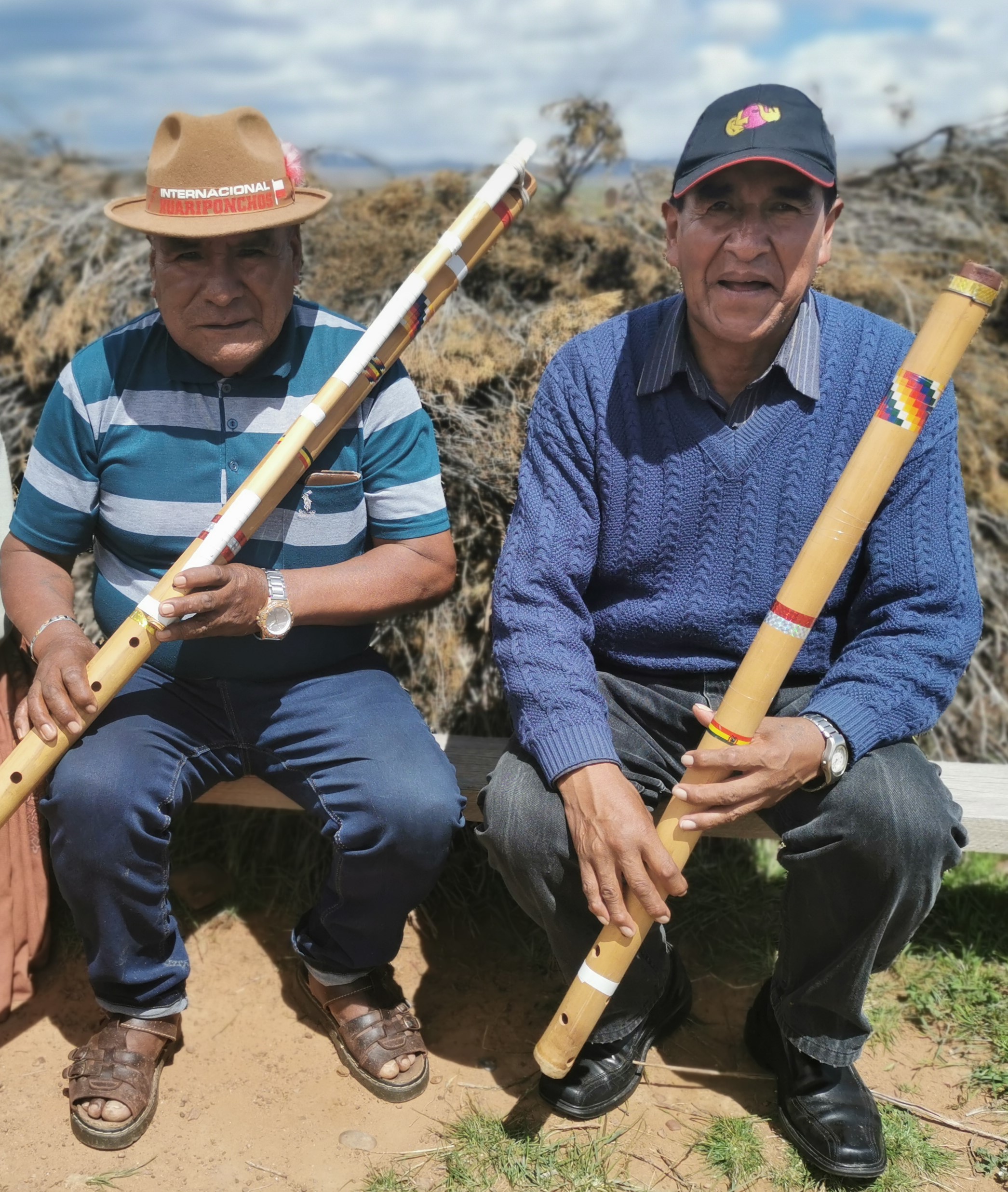 ENG: Jesika and I had the honor to accompany Walateño musiñu specialist and musician Ignacio Quispe to the Altiplano community of Kolluhuma-Belén in Aroma province, where he met again after eleven years his good friend and musiñu musician Vicente Ojeda. Don Ignacio invited us to document his interview with Don Vicente, one of the initiators of famous Moseñada group called Huari Ponchos. The Huari Ponchos were founded in the 1950s; the first Moseñada group in the region. They were also the first in recording vinyls and cassettes in the 1960s with the local community-based record label called Fonolandia. For his book Crónicas del Musiñu, Ignacio wants to include a chapter about the anthology of the musiñu, in which he aims to document with selected recordings the shifts and transformations of Bolivian musiñu music from its cradle to actuality. For this anthology chapter, Huari Poncho’s recordings of the 1960s are a valuable source for early musiñu music on the Aymara altiplano of Aroma and Loayza provinces, where musiñu music once originated. Many thanks go to Don Vicente and his wife for receiving us in their house in Kolluhuma-Belén and for sharing food, coca, and stories with us. It was amazing to see two key protagonists of Bolivian musiñu music and established maestros exchanging experiences and life stories about musiñu music on the Altiplano. Ignacio’s book will be an extraordinary source for new generations of musiñu musicians to explore more in detail the origins and developments of musiñu music on the Bolivian Altiplano.