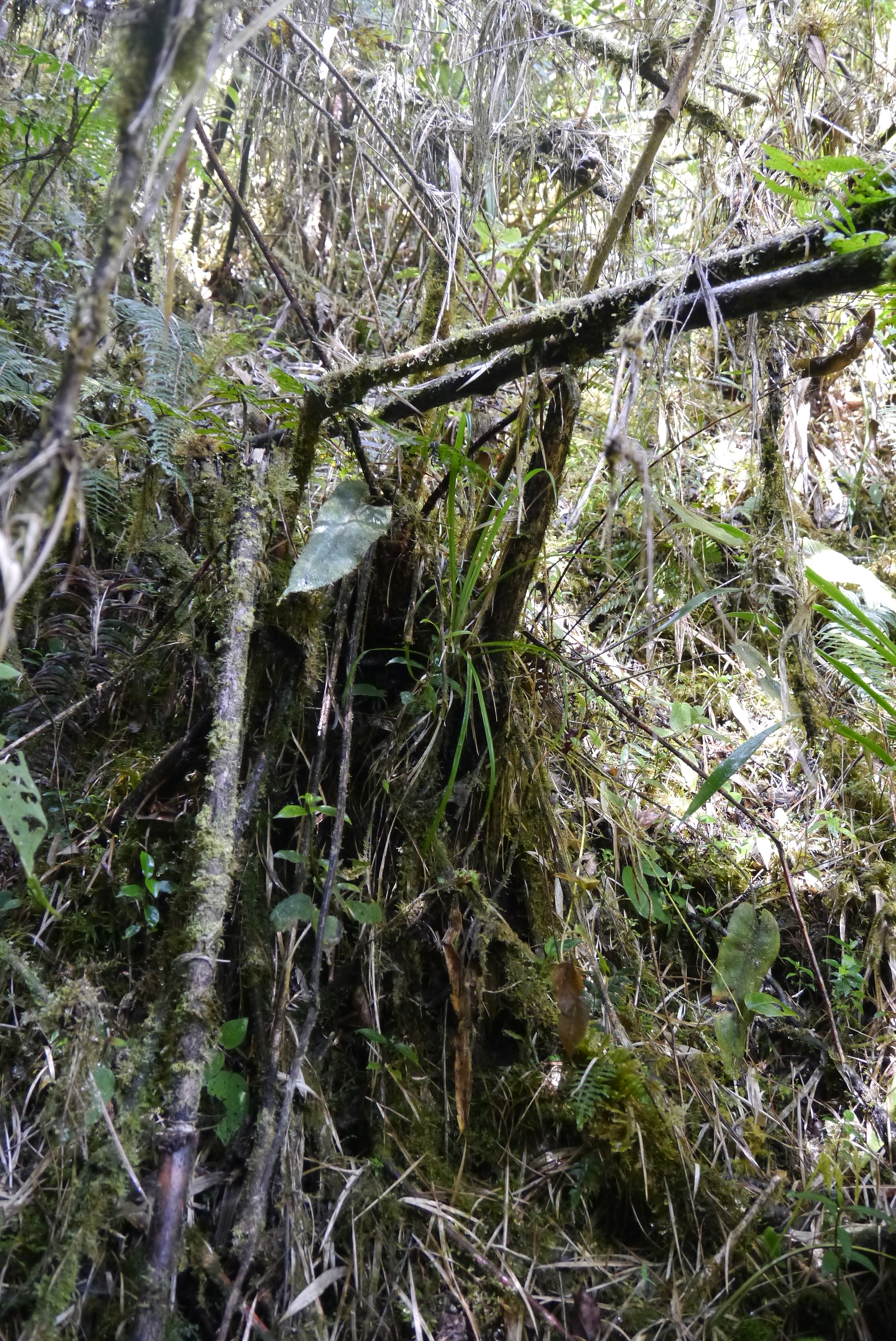 ENG: After six years I returned to Chuspipata, which is located at the higher parts of the Yungas of La Paz at 3000 meter above sea level. Chuspipata is one of the recognized sourcing regions of tuquru bamboos (Aulonemia hirtula) in the Central Yungas of the Department of La Paz. My flute maker friends used to tell me that the cloud forests of Chuspipata stopped providing materials. Bamboo populations were overexploited over the last decades as Chuspipata is a very accessible sourcing site close to the city of La Paz. Six years ago, as part of my fieldwork for my PhD thesis, I went to Chuspipata in order to conduct interviews with locals and to see what happened to these specific tuquru paceño bamboos. I was told by locals in 2018 that the tuquru bamboo trade with flute makers was still very active in the first decade of twenty-first century, but that it declined successively over the years due to a scarcity of materials. Checking sourcing sites in the mountain cloud forests, I encountered decayed and decomposing populations that flowered gregariously and set seeds in early 2018. Underneath rotten culms, new seedlings were already growing, which gave me the impression of a sustainable and resilient plant population that were about to provide new mature materials within the upcoming years. I was surprised when I returned last Sunday to the same place, just to find out that not a single seedling grew into an adult plant. Instead, other Andean bamboos such as k’urkura (Chusquea sp.), which are unsuitable for making flutes as they have solid internodes, rapidly colonized the forest gap that was opened by the collective decay of tuquru bamboos. Interestingly, I found another juvenile tuquru population not far from my known site. These populations still need to grow another six years in order to provide mature materials in the future. This example shows that ecological competition over suitable locations between different Andean bamboo species sharing the same natural habitat can be a reason for shifting population dynamics and for the interrupted reproduction cycles of musical bamboos. However, I also talked again to some members of the community of Chuspipata, and they repeated what flute makers had told me six years ago. When tuquru bamboos were mature and provided good materials, locals collected culms and sold them to flute makers in order to take advantage of the additional source of economic income. Since that moment, tuquru bamboos are not reproducing anymore at known spots in the way they did in former times. Here a more sustainable collection methods must also be considered at this specific sourcing site, especially when it comes to introducing integral musical bamboo collection practices into the management plan of the nearby Cotapata National Park and Natural Area of Integrated Management.