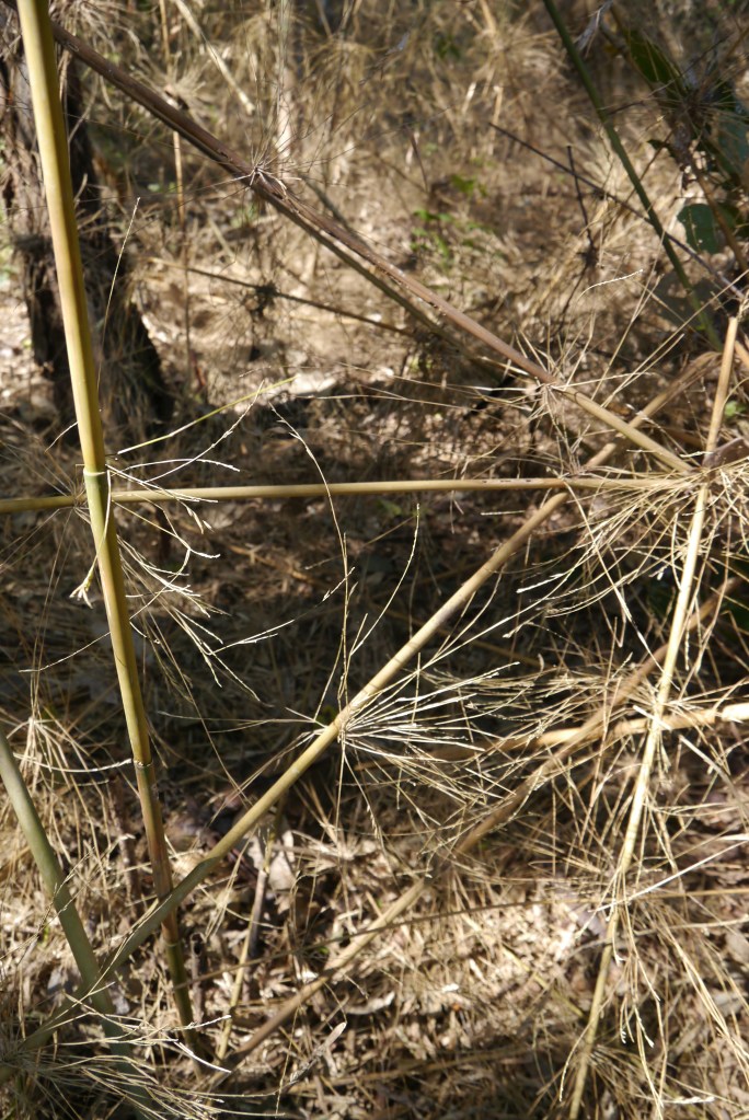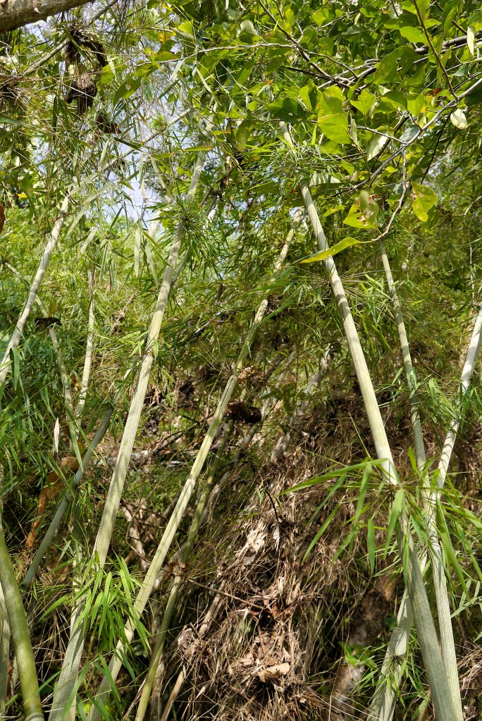 ESP: Alto Beni no solo es uno de los municipios de la provincia de Caranavi (departamento de La Paz), sino que también define un área geográfica natural (ecorregión más amplia), parcialmente integrada dentro de los departamentos de La Paz, Cochabamba y Beni. Se encuentra en el valle sinclinal del curso medio del río Beni en el piedemonte andino-amazónico. Lo que comúnmente se conoce como “chhalla de Alto Beni” son en realidad dos variantes diferentes (tipo lluq’a y qipu). Crecen en áreas distintas de la región Alto Beni. La variante lluq’a se encuentra en el lado izquierdo del río Beni, alrededor de San Antonio y hacia San José en la parte sureste de la TCO Mosetén, mientras que la variante qipu crece en el lado derecho del río Beni hacia Inicua Bajo, en la parte noroeste del TCO Mosetén. Ambos tienen distintos ciclos de vida lo que sugiere que son dos especies diferentes. En 2018, acompañé al chhallero René Condori durante la cosecha de la qipu chhalla. Antes de que empezáramos a recolectar, René inicialmente me enseñó a reconocer los culmos maduros y cortarlos correctamente. Este chhallero muy experimentado me explicó que los culmos maduros cambian de color de verde claro a un tono verde más oscuro y luego amarillento/gris. Una vez en el bosque, con las matas de chhalla frente a nosotros, señaló los culmos maduros que debían recolectarse. Estos se encontraban en el centro de las matas, mientras que los culmos jóvenes y prematuros crecían hacia la periferia. Dependiendo de la distribución de los culmos, a veces era difícil alcanzar el centro sin dañar los culmos más jóvenes en la periferia. Observé cómo René lograba cortar una entrada en forma de túnel en la mata y retiraba los culmos maduros del centro. Incluso dejaba algunos culmos maduros o envejecidos para que los suaves e inmaduros en la periferia no colapsaran. René además afirmó que los culmos maduros deben cortarse desde el primer o segundo nudo, contando cuatro o cinco entrenudos sucesivos. Esta es la longitud estándar de los culmos de chhalla para su venta, lo que facilita el conteo de entrenudos en el amarro (ay. qhiwi). Estos qhiwis, una palabra que deriva del verbo aymara qhiwiña que significa “llevar una cosa grande y pesada sobre el hombro”, consisten en 150, 200, o 300 culmos, cada uno con cuatro o cinco entrenudos. Dado que los tubos de tuquru son más largos y además se venden por unidad (no en amarro), los tuqurus generalmente se cortan por entrenudo. Tanto los entrenudos de chhalla como de tuquru se cortan por encima de los nudos, ya que los luriris usan los entrenudos desde el nudo hacia abajo, con el nudo convirtiéndose en la parte distal de la flauta. La parte del culmo de las hojas es más húmeda y suave y por lo tanto no es adecuada para una flauta. A veces, las matas están extremadamente congestionadas con culmos enredados bajo tensión extrema. Esto frecuentemente produce situaciones peligrosas, y se debe tener cuidado para no resultar herido por culmos con bordes afilados que vuelven a su lugar después de ser cortados. Era muy importante tener una hoja de machete extremadamente afilada, por lo que tuvimos que afilarlo continuamente. Quitamos todas las ramas y hojas de los culmos recolectados y los llevamos a un lugar con semi-sombra en el borde del bosque, apoyándolos sobre un tronco de árbol caído para que se sequen, de modo que los culmos no se pudran en el suelo húmedo del bosque. Lo que aprendí de René fue que es fundamental no cortar las matas por completo porque los brotes más jóvenes siguen creciendo desde el rizoma. Dijo que, en ciertos intervalos, las chhallas pueden recolectarse de la misma mata durante varios años (la fase de estabilidad), si se hace correctamente. René suele trabajar más frecuentemente durante la temporada seca, y solo de manera espontánea durante la temporada de lluvias, cuando el clima lo permite. Dijo que las chhallas se regeneran durante la temporada de lluvias y se debe tener más cuidado durante la recolección. Además, las chhallas estarían más infestados por insectos, hongos y perforadores, lo cual está científicamente relacionado con mayores contenidos de almidón (azúcar) durante la temporada de lluvias. De hecho, sus modos de recolección de chhalla de baja invasión y selectiva antes mencionados también están vinculados a su estrategia de sustento. Nunca cortaría las chhallas completamente, ya que son la base material para su bienestar económico futuro. René interpreta la rápida expansión de la frontera agrícola y la destrucción de los hábitats de chhalla en Alto Beni como una gran amenaza para su trabajo. Ya está en constante búsqueda de nuevas poblaciones de chhalla, ya que año tras año se queman los sitios de abastecimiento conocidos. Alrededor de comunidades interculturales en el lado oeste del río Beni, donde se obtiene la lluq’a chhalla por ejemplo, los bosques antiguos fueron cortados y quemados en gran parte por tala y quema. Los interculturales preparan el bosque cortando el sotobosque, que dejan secar durante varias semanas. A menudo no permiten la recolección de chhallas, ya que utilizan los culmos de chhalla secos como parte del material de tala, que luego queman para producir la chacra con capas de ceniza ricas en nutrientes, haciendo el suelo temporalmente fértil. He experimentado tal incendio forestal en Alto Beni, que se extendió rápidamente y desarrolló enormes fuentes de fuego de unos 10 a 15 metros de altura, alcanzando las copas de los árboles del bosque amazónico-andino. De hecho, la chhalla se usa como un acelerante natural del fuego.