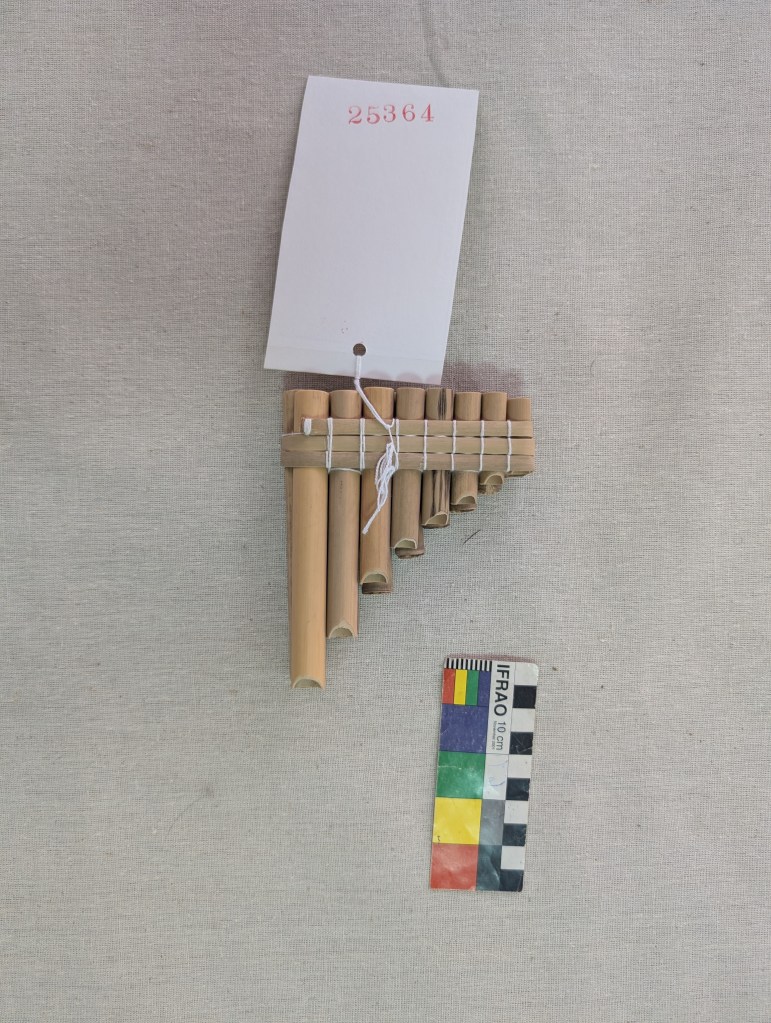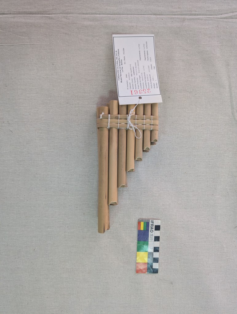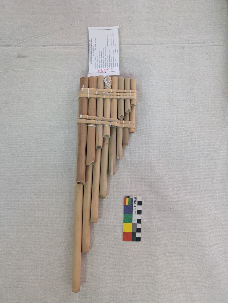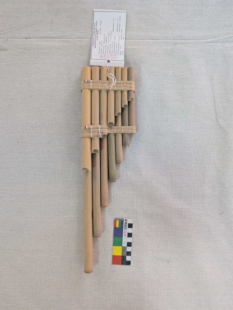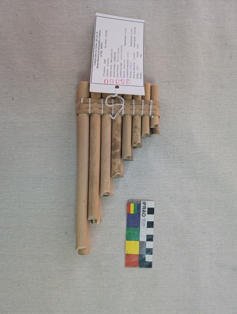 ENG: In March, I reviewed some bamboo flutes from the collection at the Museo Nacional de Etnografía y Folklore (MUSEF) in La Paz. I examined several qantu phukuna and jach’a sikuri panpipes that were crafted in December 2007 by a luriri from Walata Grande, who used the renowned chhalla from the Zongo Valley. Some of the tubes show signs of decomposition. Assuming that the chhalla was collected and transformed into sikus in the same year, this suggests that the plant was near decomposition around 2008 or 2009. This aligns with the data gathered during my fieldwork in 2018 and 2024. In 2018, I saw the chhalla de Zongo in a juvenile state, which likely experienced decomposition earlier around 2015 or 2016. By 2024, these plants had matured and were once again beginning to decompose. According to the luriris and chhalleros, the chhalla de Zongo has a life cycle of approximately 7 to 8 years. The musiñu flutes I reviewed, also made in 2007 by an unknown artisan from Walata Grande, were predominantly crafted with lluq’a paceño tuquru, found in the southern La Paz yungas near Choquetanga. Locals refer to this bamboo as “fina,” or fine tuquru. According to Ignacio Quispe, a master luriri and specialist in musiñu, this is one of the most suitable types of tuquru for crafting musiñus, although it is now an extremely rare material. Some tubes feature beautiful black marks known as “lunarejo” by the luriris. Some salliwas (with palltjatas made from suqusa cane) were made from a single tuquru internode. Nowadays, some tuqureros do not allow the tuqurus to develop culms with such long basal internodes, as they prefer to harvest shorter internodes used for tourist flutes.
