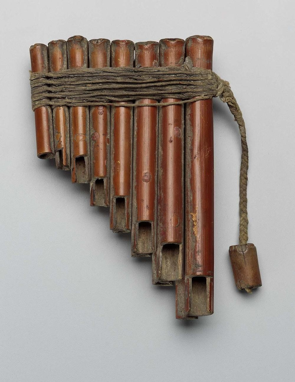 I would like to add the following update to this discussion, which I find extremely interesting regarding the use of native Andean woody bamboos in pre-Hispanic flute making. The Museum of Fine Arts in Boston (US) possesses a particular panpipe in its “Pre-Columbian Gold and Andean Civilizations” collection (here), which is clearly made from native woody bamboos of the Rhipidocladum genus (nowadays referred to by Aymara Andeans as chhalla, a term used since pre-Hispanic times). The panpipe is uncontextualized (“unknown culture”) but has presumably been dated to after A.D. 1600. However, the panpipe displays some characteristics of Andean pre-Hispanic panpipes. For instance, the first row possibly features perforated bamboo nodes at its distal end, stopped with calabash stoppers, similar to those found in the Bolivian highlands. This is a widespread crafting technique in pre-Hispanic panpipes, which is curious because contemporary panpipe makers use the bamboo nodes as natural stoppers for the resonator tubes (see my discussion in the article). Were these nodes perforated to better control the acoustic properties of the bamboo and the sounds they produce when played collectively? Or has the calabash played an important ritual function? The second row of this particular panpipe is, however, much more intriguing from a musical bamboo perspective. The second row, which developed in the Late Formative Period and spread during the Middle Horizon and Late Intermediate Period, is nowadays often referred to as “resonators”. However, acoustically speaking, the secondary tubes (pallq’as) are more accurately timbre modifiers (see the chapter by Arnaud Gérard 2018 here), which, in this case, feature archaeologically widespread squared cuts. Gérard (2018 [my translation]) writes: “In reality, the function of the squared cut at the distal end of the pallqa pipes in the second row is to shorten the acoustic length of the secondary tube compared to the front length. Its acoustic effect is more about bringing that note closer to the octave of the first row than distancing it. This is due to a correction for the influence of the tube’s diameter on the pitch of the sound.” However, the most interesting aspect of this panpipe is that the bamboo tubes are placed with their nodes towards the proximal end; in other words, “upside-down” from the perspective of contemporary panpipe-making practices. In a personal communication, music archaeologist José Pérez de Arce suggests that this might be a way to enhance its function as an augmenter of the timbral spectrum described by Gérard (2018). Gérard (2018) shows that these inverted tubes are not closed but semi or partially open, as they often have tiny holes next to the nodes. Thus, they would indirectly produce sounds, adding further partials. However, it is quite unknown how they were played, and much more research in musical acoustics is needed in general. The panpipe is tied up with a yarn, which has a bamboo node at its braided end. Might this be an additional stopper that the panpiper used to stop individual tubes while playing?