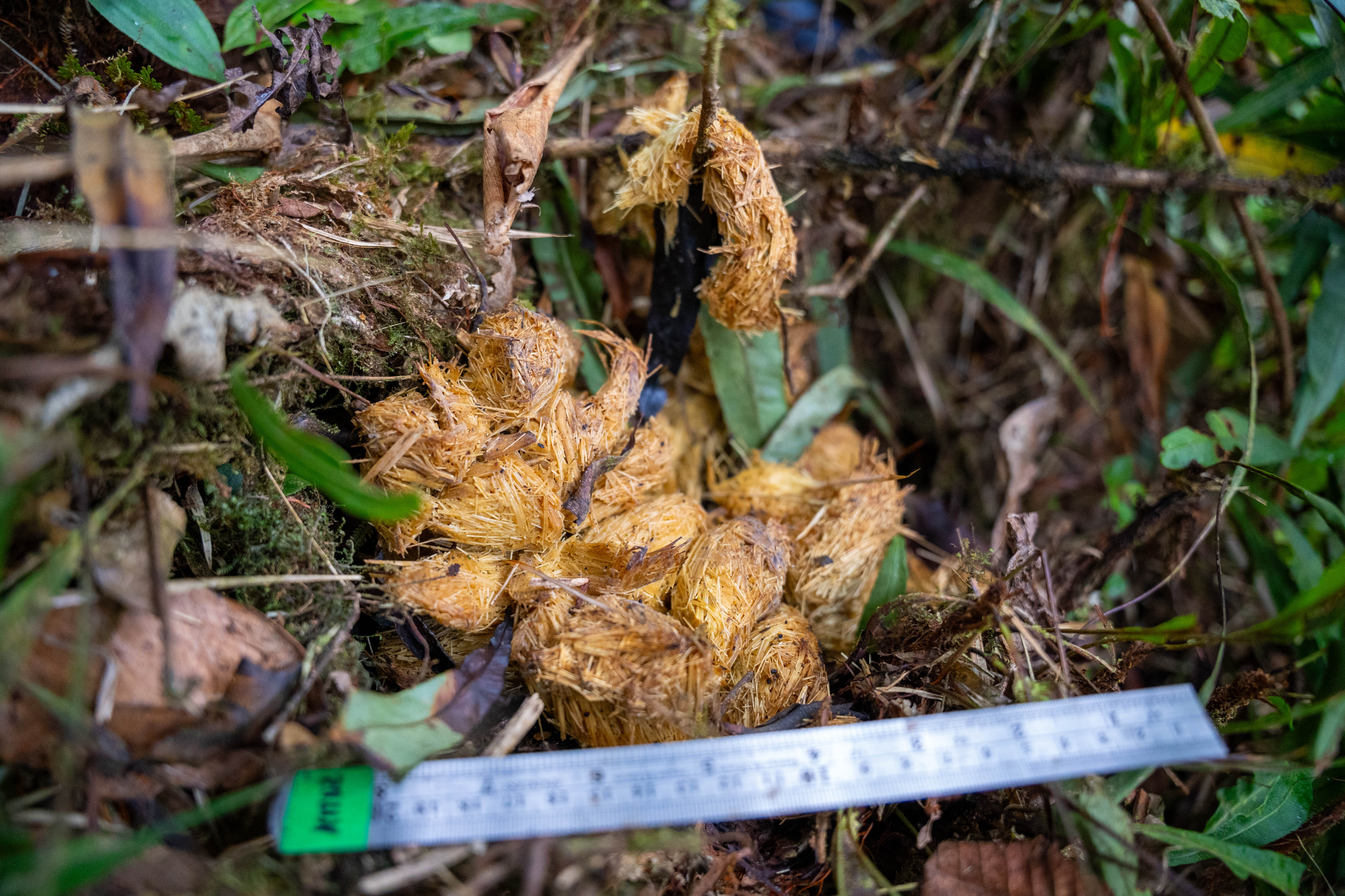 The Andean bear has a very close relationship with the woody bamboos of the genus Chusquea, which are an important food source in the cloud forests. The bears mainly consume the tender shoots and canes, which they take advantage of in large quantities to supplement their diet, especially during times when there is lower availability of fruits or other plant resources. During our monitoring with camera traps, we have recorded several bears feeding intensively within dense bamboo patches, where they leave marks, trails, and remains of chewed canes, demonstrating their frequent use of these sites. This relationship also plays a broader ecological role. By moving through bamboo thickets and feeding on different plant species, bears contribute to the dispersal of tree species seeds, helping to maintain the natural regeneration of the forest and its biological diversity.